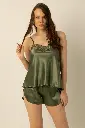 Ensemble short en satin guipure à fines bretelles Miorre - VERT PÉTROLE